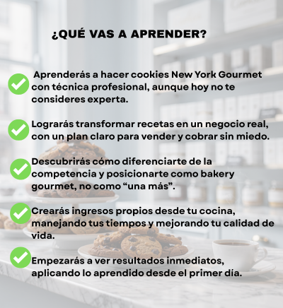 Si querés dejar de improvisar y empezar a crear cookies New York que se vean, se sientan y se paguen como gourmet, este ebook es para vos.