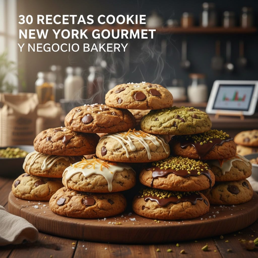 Este ebook reúne 30 recetas exclusivas de Cookies New York gourmet, creadas para lograr tamaño real, interior húmedo, bordes dorados y un sabor que se vende solo.